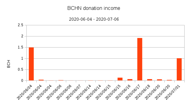 A total of 1167.32876742 BCH had been received in donations, most of that via the Flipstarter campaign which successfully completed on 26 April, yielding 978 BCH in funding for BCHN's initial project proposal.