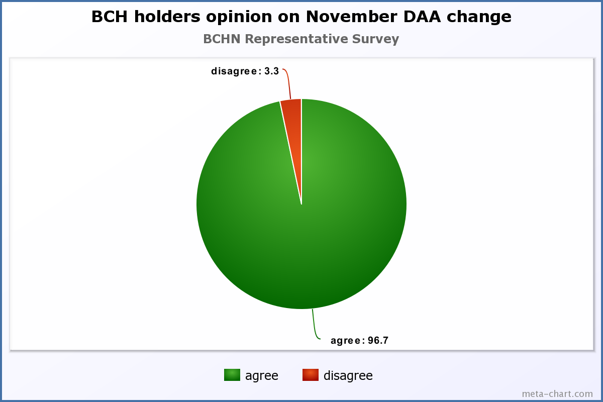 The question was "Do you think DAA should be resolved in the November upgrade?" We stress that this was an opinion poll and not a binding vote.