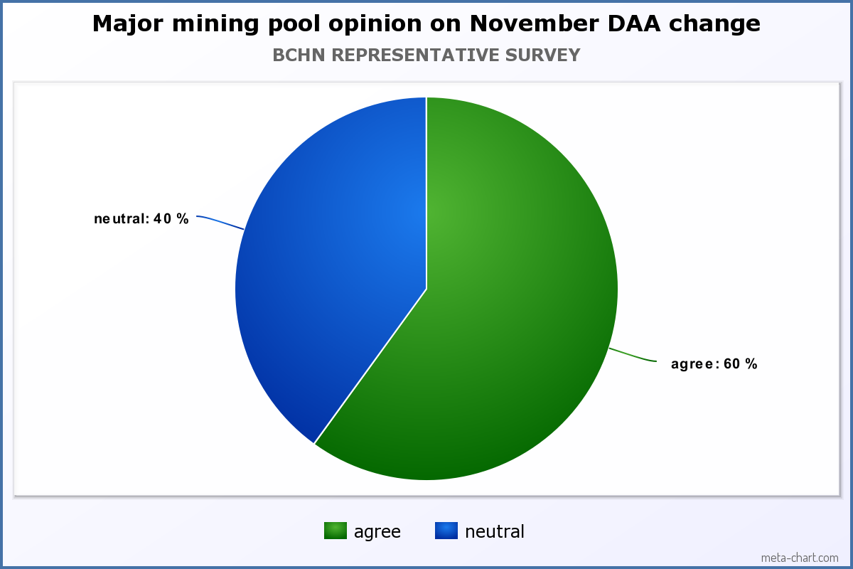 Bitcoin Cash Node (BCHN) Representative Tracy Chen consulted with the Chinese Bitcoin Cash community (big mining pools, exchanges, key persons and holders) on the question of whether they support a change of Difficulty Adjustment Algorithm (DAA) in November.